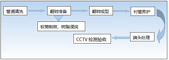 原理:通過特殊加壓設備將浸漬了特殊粘合劑的內襯軟管翻入待修復管道,翻轉時浸漬有粘合劑的內層翻轉到外面與原管道內壁緊貼,經過固化最終形成具有防腐防滲功能的內襯層,最終達到修復管道的目的。